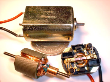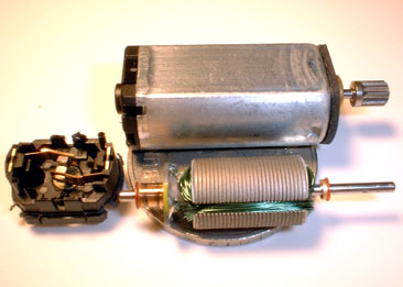 Gut zu sehen ist, dass diese Motoren keine richtigen Kohlebürsten haben, sondern zur Kommutierung lediglich winzige Schleifbleche besitzen. Dies ist auch der Grund für das frühe Ableben bei der erforderlichen Überlastung.