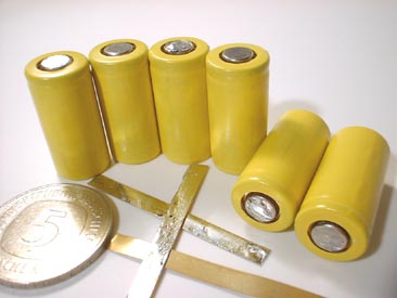 Da gibt es die fertig zusammengestellten Zellen die mittels dünnen Eisen/Nickel-Blechen durch Punktschweißungen verbunden sind.