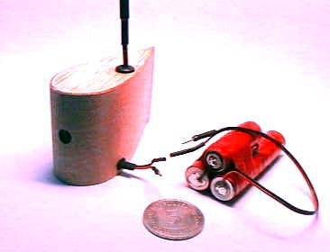 In jedem Falle wollte ich eine autonome Einheit behalten, um die Videoübertragung aus jedem Modell zu ermöglichen. Daher habe ich mittels 0,4mm Sperrholz (Seitenteil) und 2mm Balsa (Boden-Deckplatte) ein saugend enges Gehäuse in Tropfenform gebaut. Die Kamera steht quer zur Flugrichtung, der Übertrager sitzt längs dahinter. Der so entstandene "U-Boot-Turm" ist genau 5cm hoch, 9cm Lang und an der dicksten Stelle 3,5cm breit. Das Gewicht mit Übertrager und Kamera beträgt genau 52g! Die Stromversorgung kann aus dem Antriebsakku erfolgen oder von einem separaten Akku (hier 110mAh) übernommen werden.