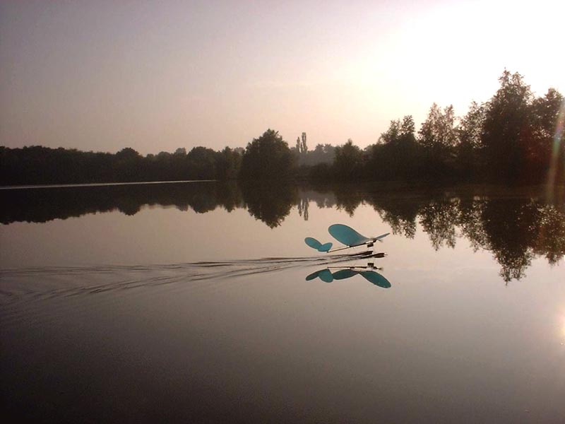 Man kann den Flieger auch mit "Vollgas" aufsetzen und somit über die Wasseroberfläche "Springen lassen" ... oder einfach nur Wasserski fahren ... oder so dicht über die Wasseroberfläche fliegen, daß die herabhängende Antenne im Wasser tanzt-