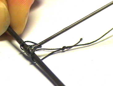 Und zwar so: Mal um die Rippe, mal um den Flächenstab - Natürlich sehr stramm und mit genügend Sekundenkleber.