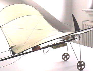 Papier und Seide: Mit diesen Bespannungen wurde zum Zeitpunkt unserer ersten "Versuche" experimentiert.- Das Gewicht ist nicht besonders niedrig, und von Reißfestigkeit kann nicht annähernd gesprochen werden! Das größte Manko ist jedoch, daß sich die Folie mit wechselnder Luftfeuchtigkeit verzieht! Somit sieht der Slowflyer, in Form und Schränkung der Tragfläche, je nach Wetterlage anders aus - an fliegen kann jedoch nicht gedacht werden.
