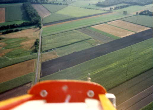 Hier wurde ausnahmsweise "wild" geflogen. Gestartet wurde von dem Weg im Vordergrund. Bei genauem Hinsehen sind unsere Autos zu erkennen. (Und wir)