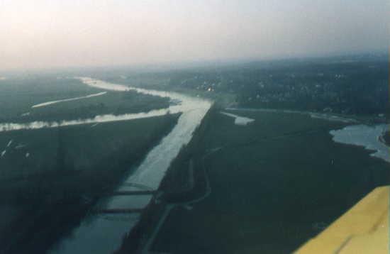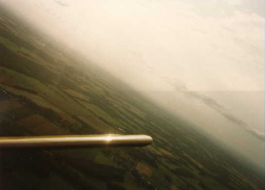 Eine schöne Panoramaaufnahme aus recht großer Höhe. Gestartet wurde ebenfalls vom Flugplatz in Etelsen. Der Fotoapparat ist nach hinten links gerichtet. Im Vordergrund ist daher das Höhenleitwerk zu sehen.