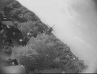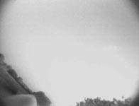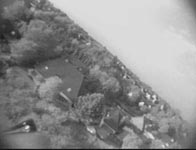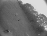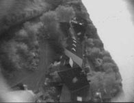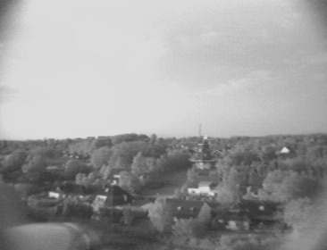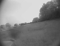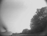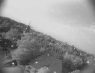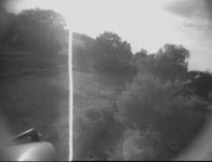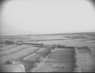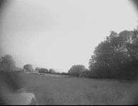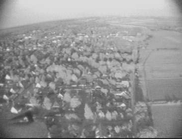 Trotz erheblichen Bemühungen konnte ich den Videorecorder noch nicht auf dem Flugplatz zum laufen bekommen, da dort kein 220V Anschluß im Umkreis von 1km zu finden ist. Versuche mit einem 12V DC - 220V AC Konverter schlugen fehl - Dem recht empfindlichem Videorecorder waren wohl die erzeugten 220V nicht sinusförmig genug - somit verweigerte er einfach den Dienst. Da ich jedoch gerne ein paar Bilder von der Kamera veröffentlichen wollte, habe ich den Videorecorder auf den Dachoden des Hauses gestellt und den Empfänger ohne Brille direkt an den Videoeingang geklemmt. Nachdem selbiger auf Aufnahme stand, ging ich just auf die Wiese vor dem Haus und startete mit der Kamera auf dem Flash. Leider ist die Reichweite durch das Dach zwischen Flugzeug und Empfänger stark eingeschränkt, sodaß ich auf diese Weise leider keine Bilder aus größeren Höhen empfangen konnte. - Trotzdem ist ein kleiner Eindruck über den Blick aus einem Modellflugzeug entstanden. (erhebliche Qualitätsverluste sind auf das Digitalisieren zurückzuführen)